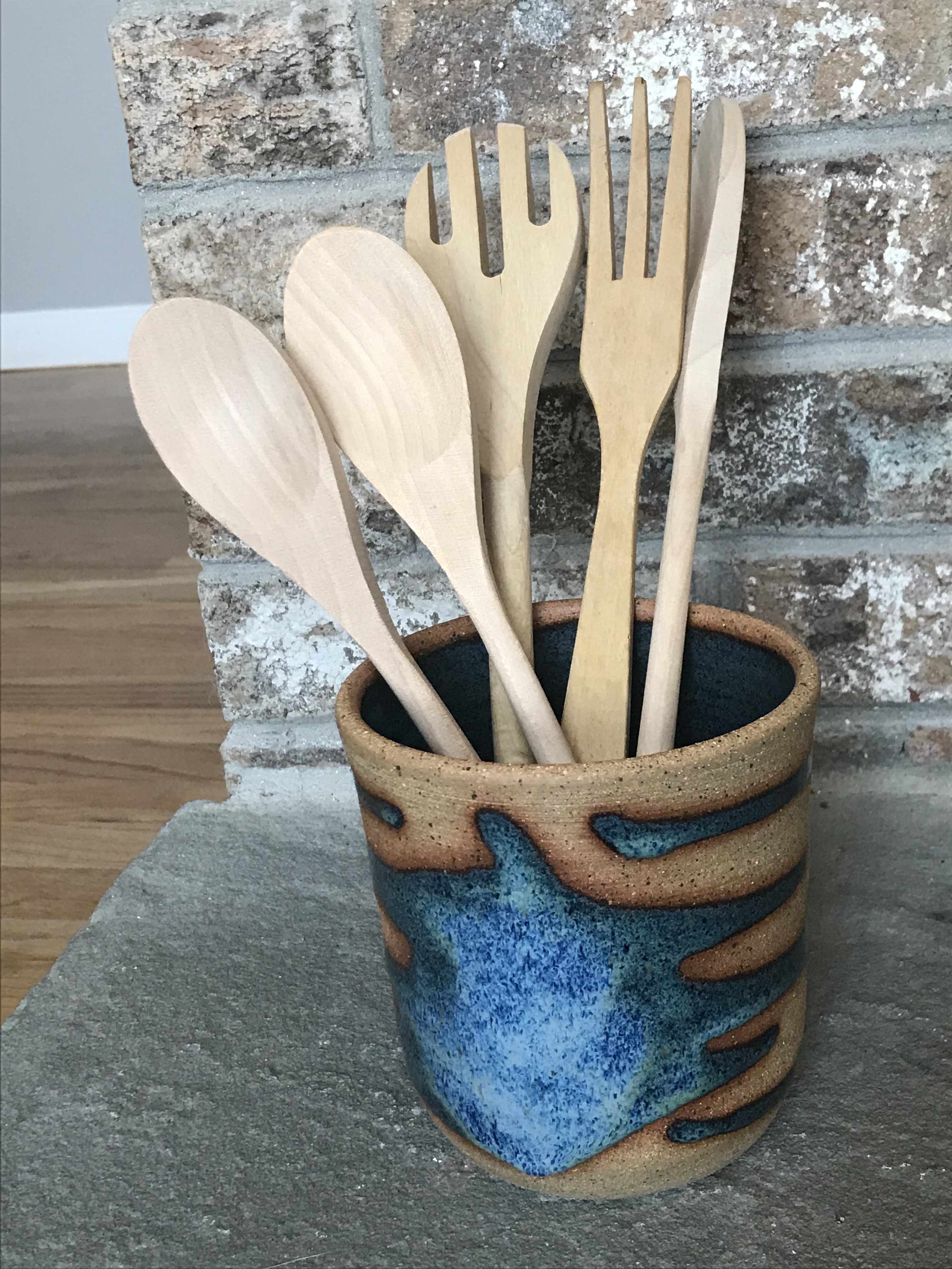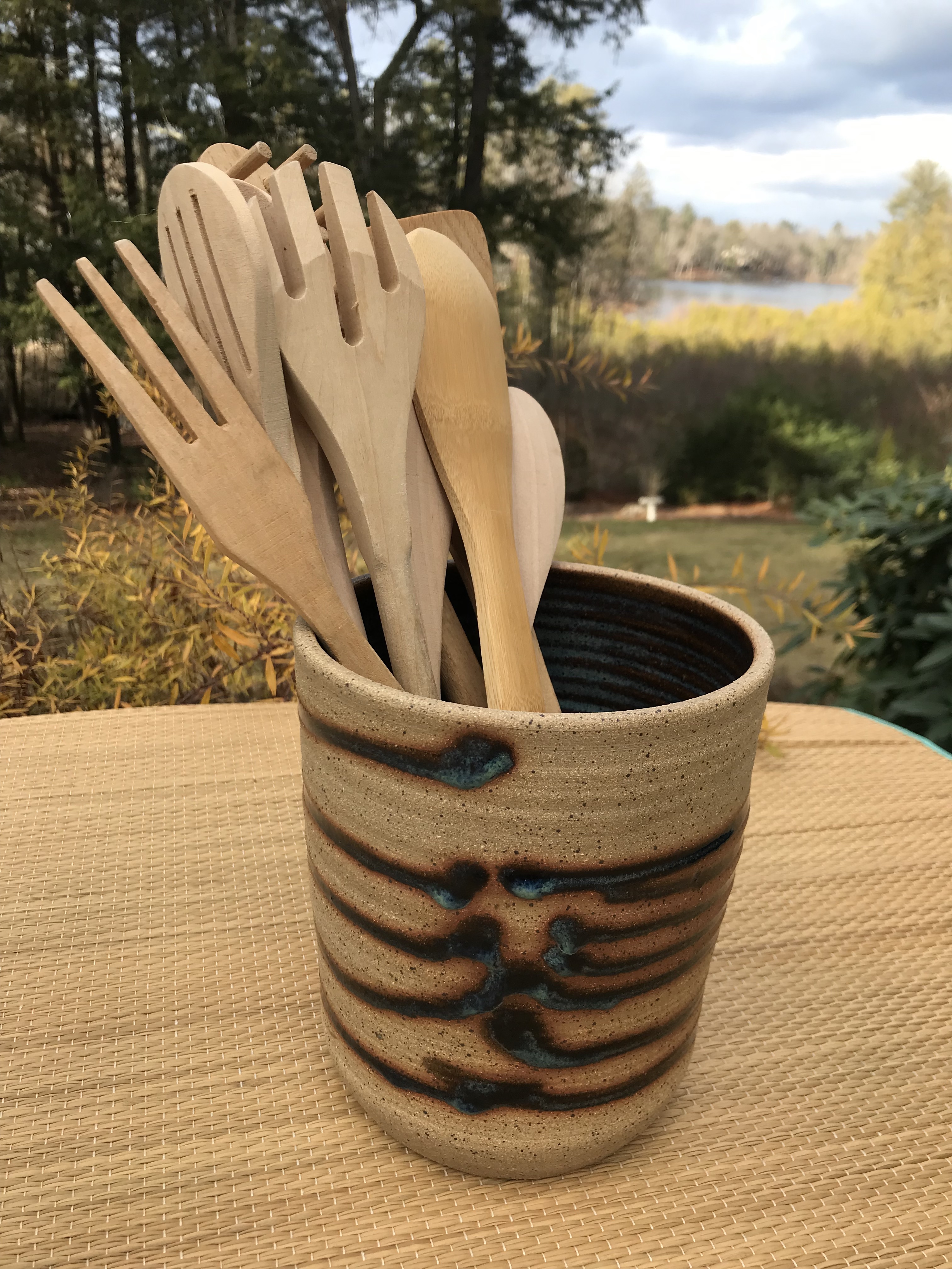 Beautiful ceramic piece holds cooking utensils perfectly! Absolutely love it! Ordering and shipping were easy and perfectly done! So happy!!